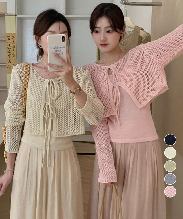 出荷条件:※沖縄・離島発送不可 Uネックニットキャミ 透かし編みカーディガン 薄手ニットアンサンブル リボンカーディガン 長袖ニット着回し春夏服 韓国風 メッシュニット春服 2枚重ね着トップス ショート丈羽織り黒 レディース向けのキャミソールと透かし編みカーディガンの2点セット。 軽やかなメッシュ素材のカーディガンとシンプルなキャミソールのレイヤードで、抜け感のあるフェミニンスタイルに仕上がる。 フロントリボン仕様がさりげないアクセントになり、春夏シーズンに活躍する着回し力の高いアイテム。 ロングスカートやワイドパンツ、デニムと合わせて、大人カジュアルからきれいめコーデまで幅広く対応。 トップス素材:レーヨン89%+ナイロン11% キャミ素材:レーヨン89%+ナイロン11% カラー:ブラック/アイボリー/ベージュ/グレー/ピンク サイズ:ワンサイズ トップス 着丈:約41cm 肩幅:約37cm 袖丈:約60cm ゆき:約78.5cm 身幅:約46cm 胸囲:約92cm キャミソール 総丈:約41cm 身幅:約36cm 胸囲:約72-84cm 裏地:なし 伸縮性:キャミのみあり 透け感:若干あり ※ニット素材のため、編み目に隙間が生じる場合があります。同系色のインナーの着用をおすすめします。 生産国:中国 ※すべて平置きサイズです(採寸方法違いより、多少の誤差がございますので、ご了承ください)。 ※海外輸入品のため、商品の細部仕様は多少異なる場合がございます。予めご了承の上、ご注文お願い致します。 出荷日数:5営業日程度 取引条件:中国産激安ノーブランド新品であり、日本製高級ブランド品と比べると、生産上の問題で作りが甘い所がございます。ご了承頂いたうえで、ご注文お願い致します。 商品本来の機能として全く使用不可ではない場合は、ご注文後に交換・返品をお受付できかねます。 送料は無料です。 【返品不可】お客様のご都合による商品の変更・キャンセル・解約・交換・返品は一切お受けできません。 商品コード:00006-80zhongyi-003