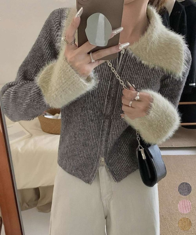 ダブルジップ ニット カーディガン ショート丈