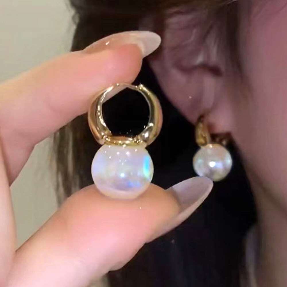 「人魚の涙」とも呼ばれているほどの美しい光沢のあるフェイクパールを使用したフープピアス