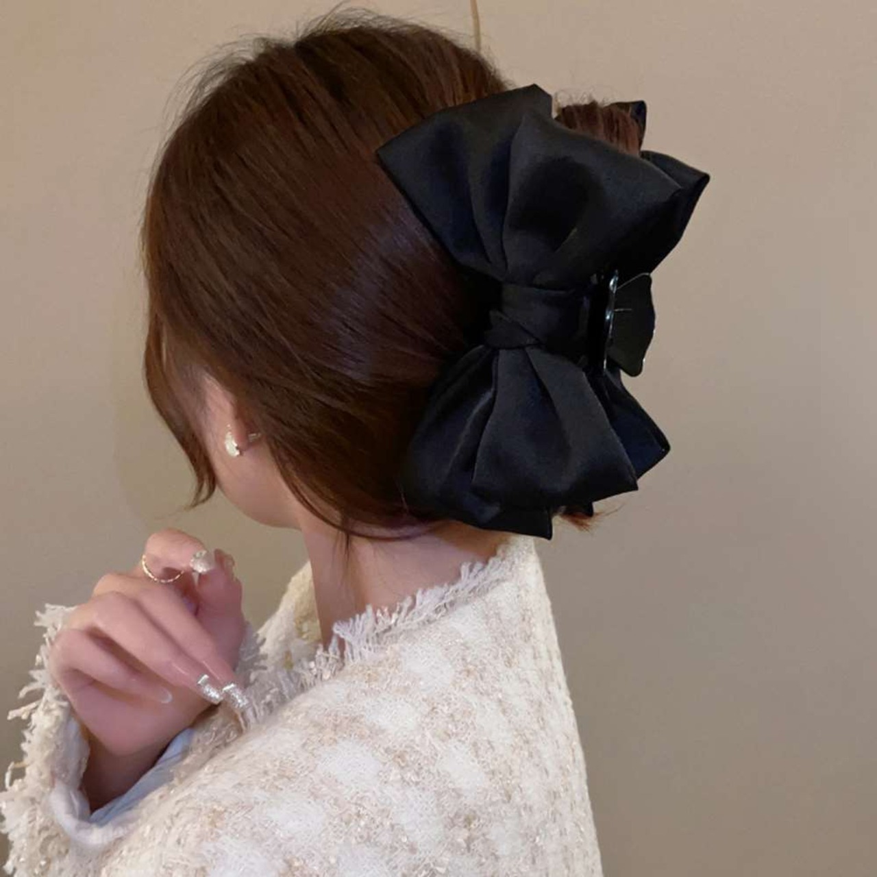大きめサイズのリボンモチーフは存在感もありアップスタイルを華やかに仕上げてくれる