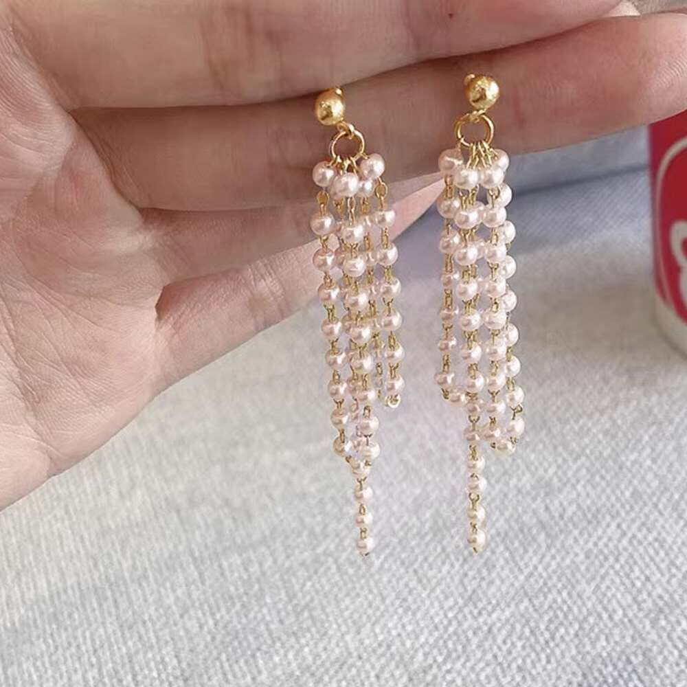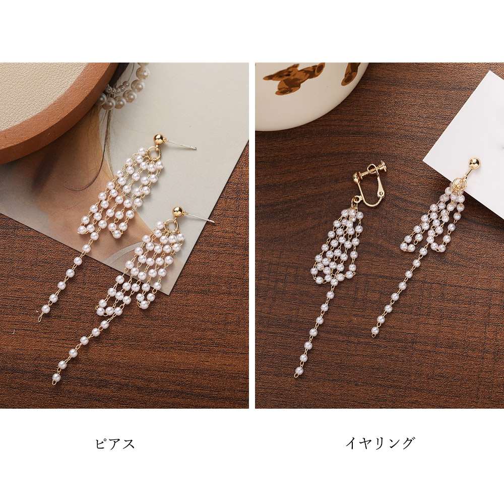 小さめパールをいびつに繋いだフリンジルックスが立体感を演出するタッセルピアス&イヤリング
