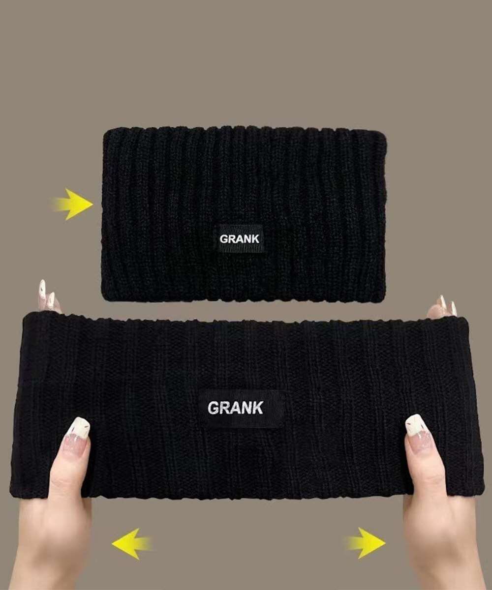 シンプルデザインにタグがアクセントのニットヘアバンド