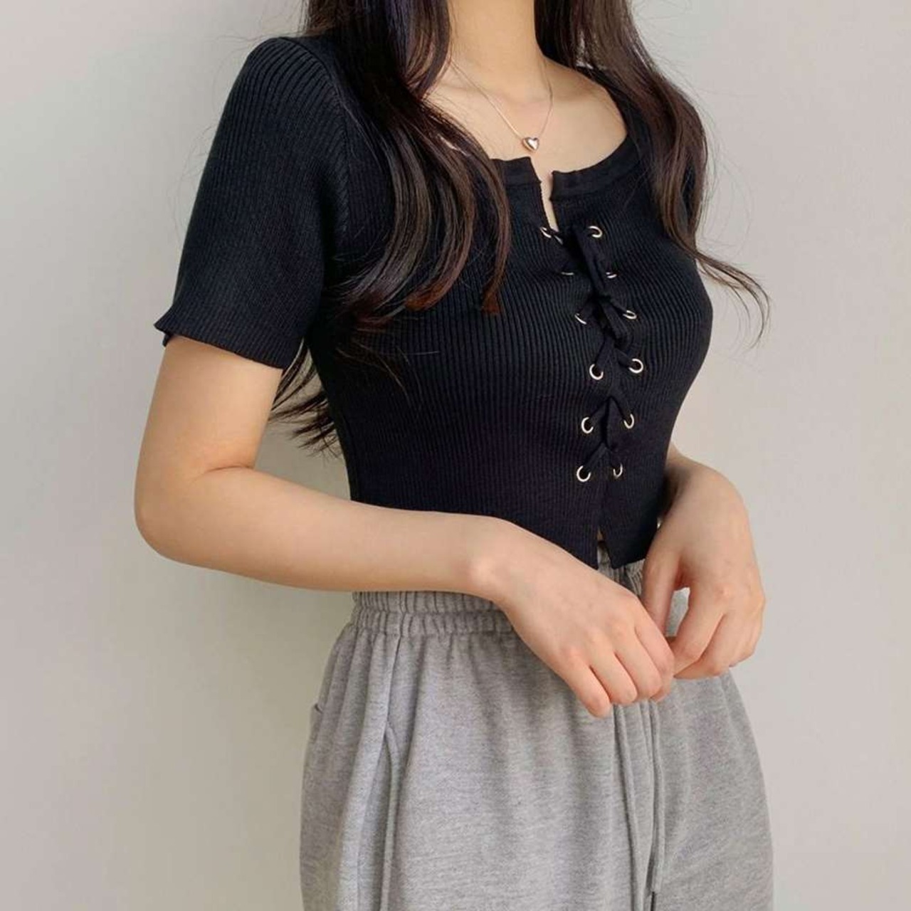 キーワード:トップスきれいめ リブニットおしゃれ ニットTシャツ無地