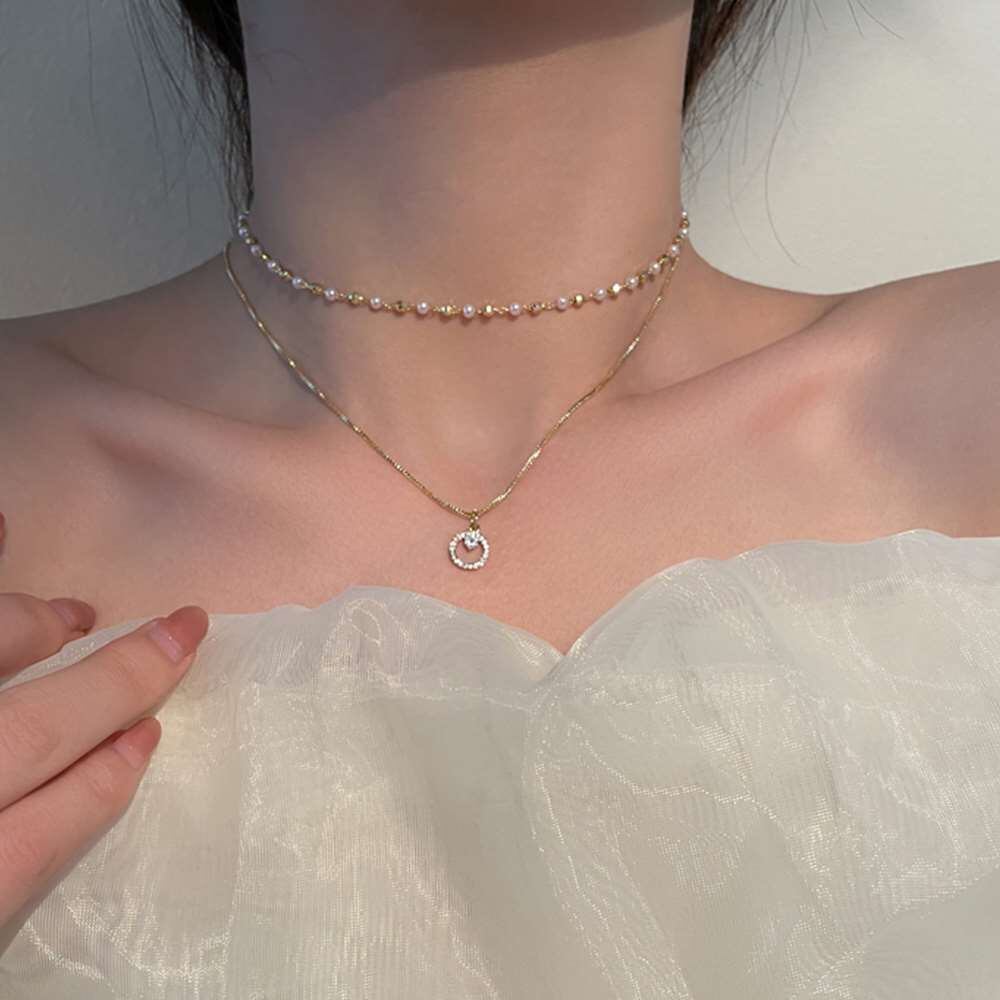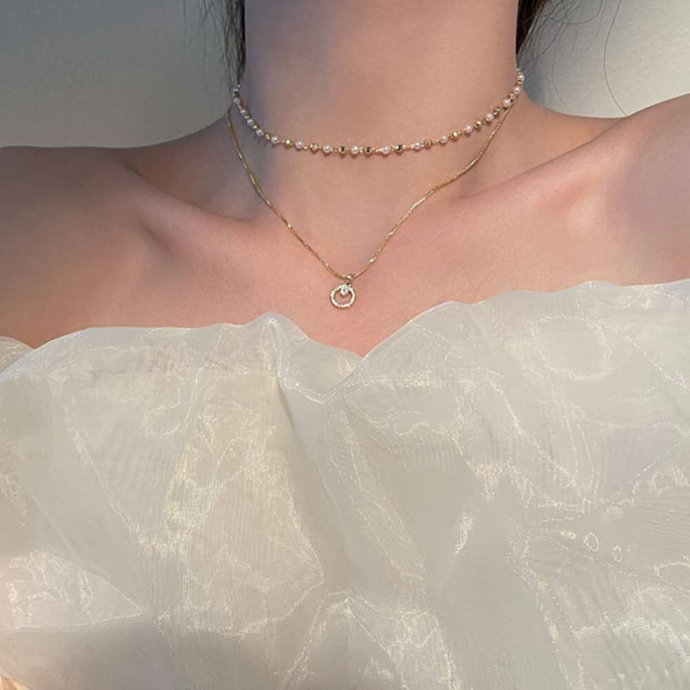 デコルテを上品に引き立ててくれる大人っぽい二連ネックレス。