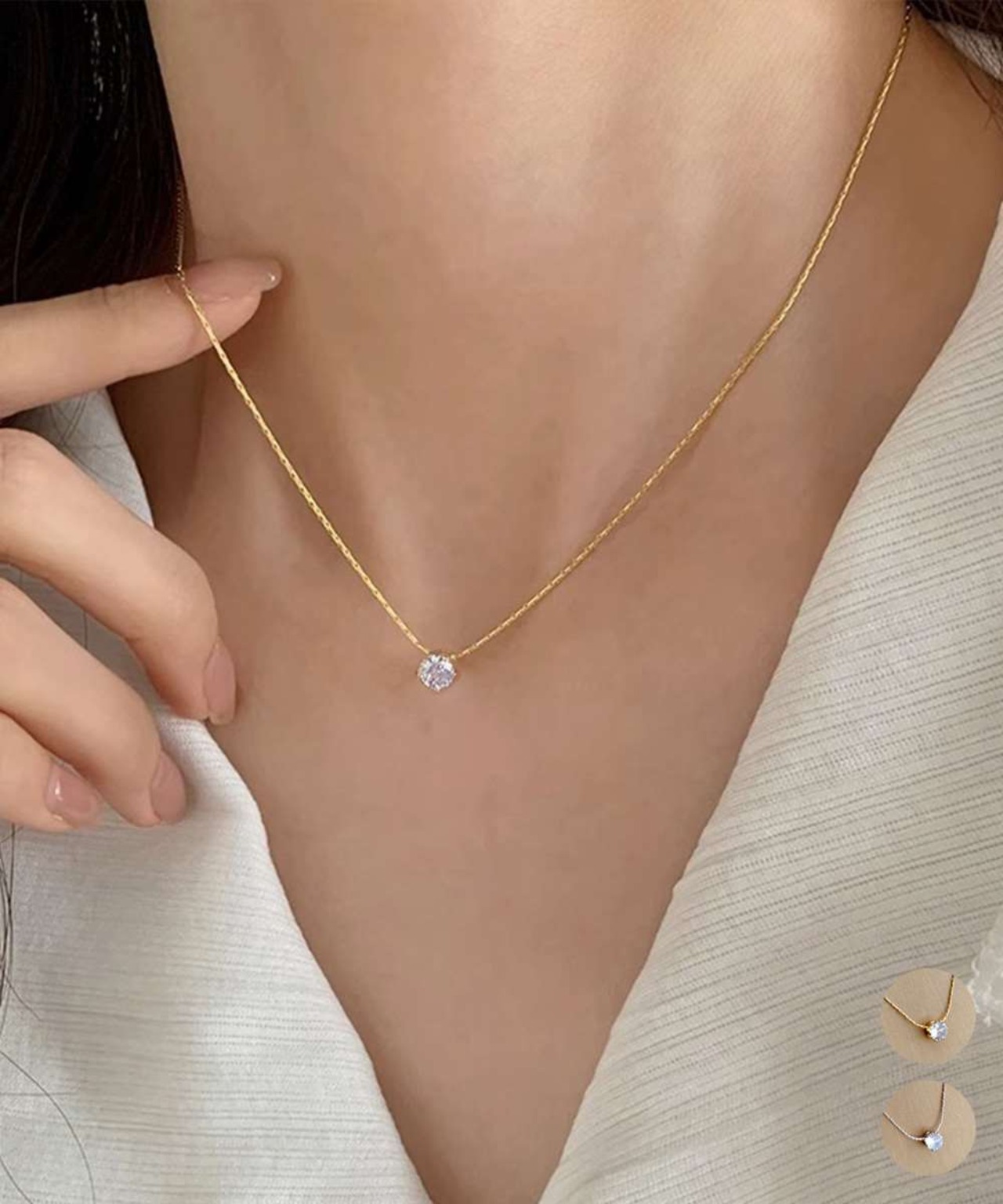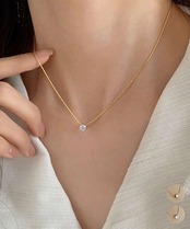 きらきら輝く一粒のラインストーンをあしらった、上品で華奢なネックレス。