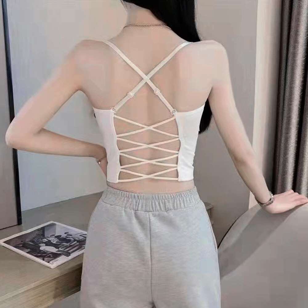 レースアップでおしゃれ映え「背中の肌見せ」カップ付きキャミソール。