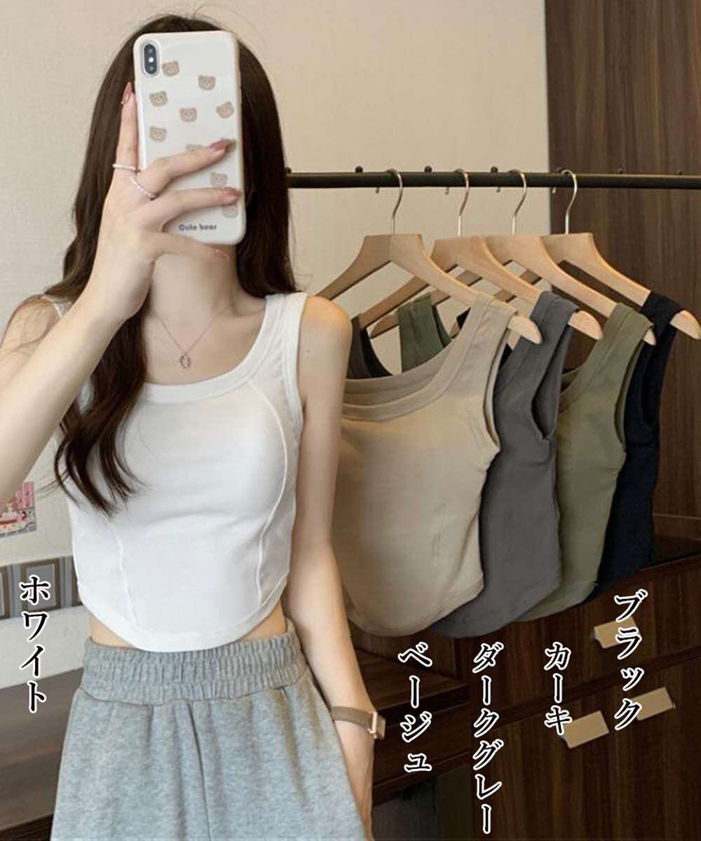 キーワード:Uネックタンク無地 短丈 タンクトップ 見せインナー重ね着
