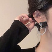 リボン付き、フェイクパールをハートモチーフにしたとても綺麗なピアス&イヤリング。