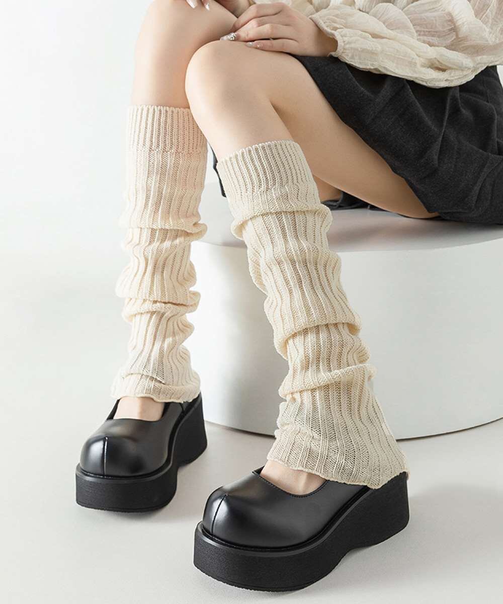 まるでルーズソックス風のデザインが魅力のニットレッグウォーマーです
