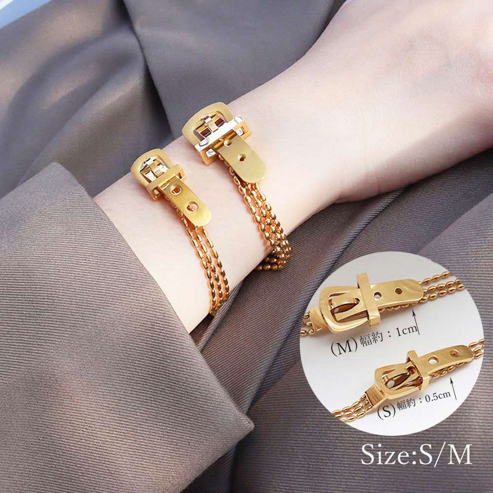 チェーンブレスレット ベルトデザイン 重ね付け ギフト 艶感ゴールド ブレスレット 大人 プレゼント お洒落 バングル お揃い