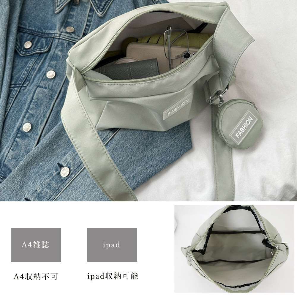 丈夫なナイロン素材で仕上げた軽量で実用的な大容量ショルダーバッグです