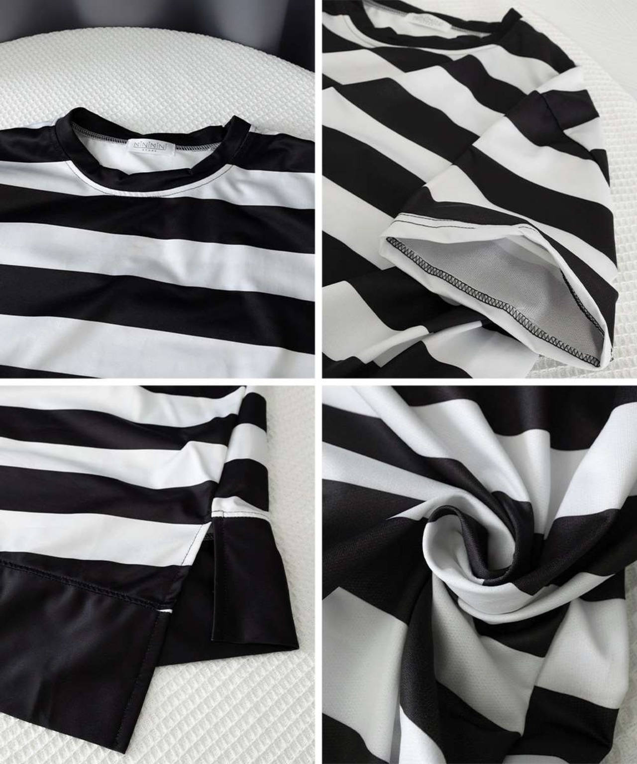大人の方でも着やすい太ピッチのボーダー柄チュニック丈Tシャツです。