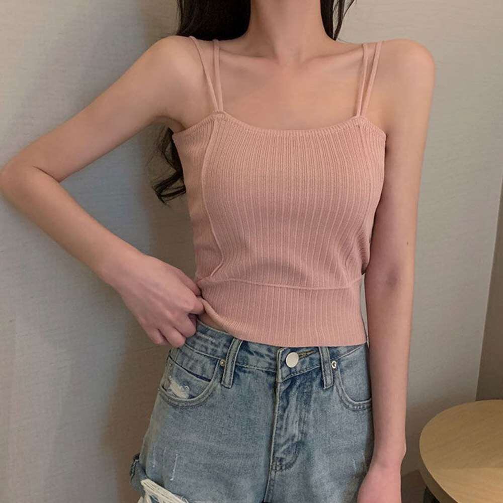 リブ ニット キャミソール ダブルストラップ