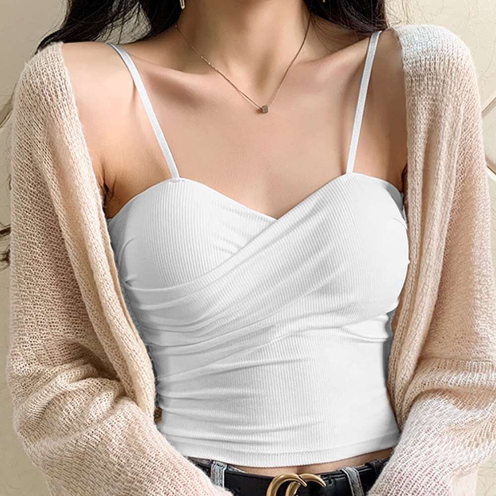 フロントのツイストデザインがオシャレ、カップ付きキャミソール