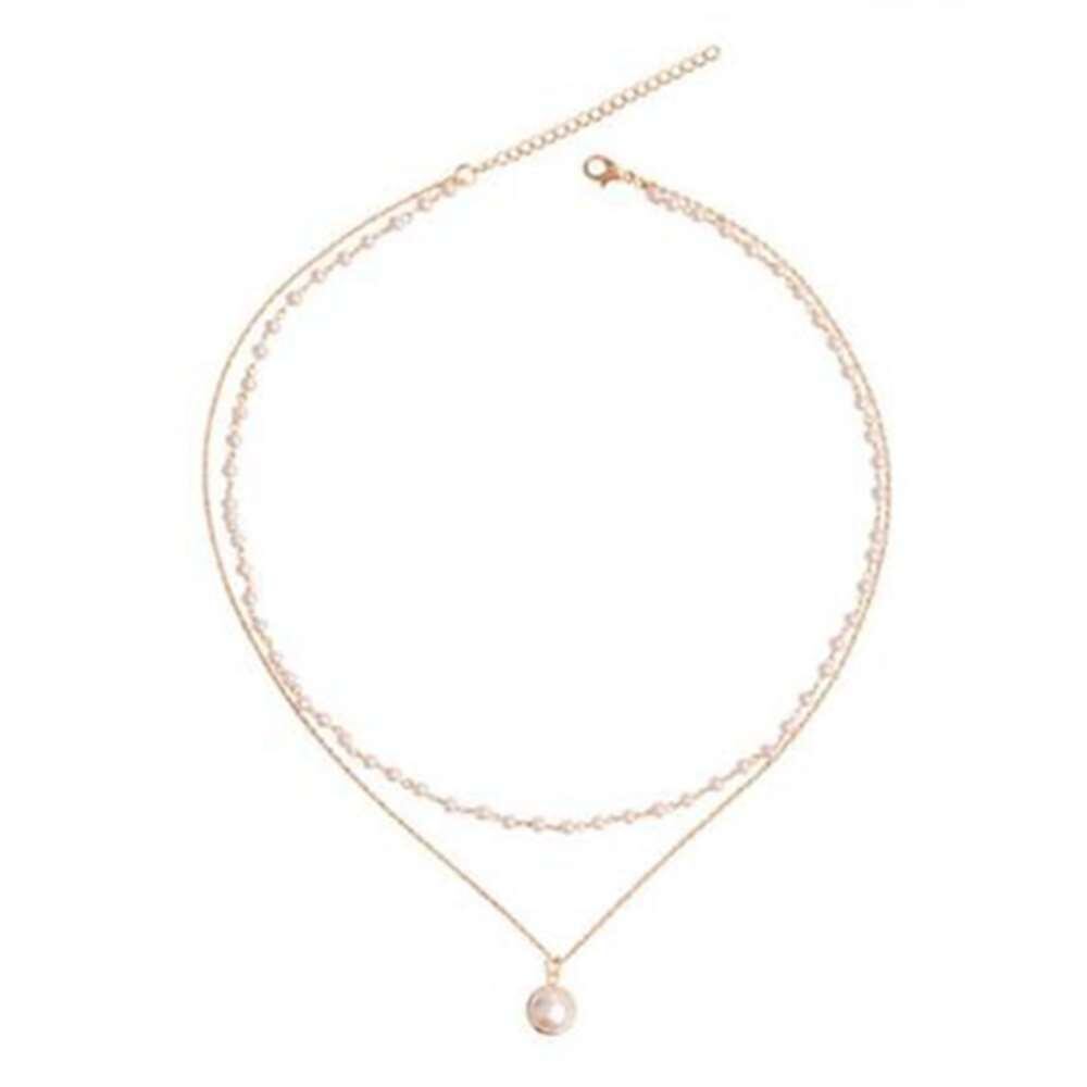2連 チョーカー ネックレス レディース フェイクパール チェーン