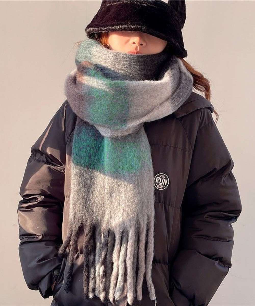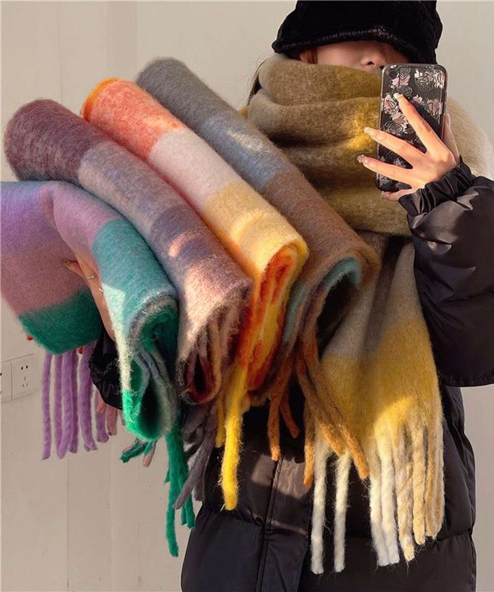 キーワード:お洒落膝掛け可愛い タッセルマフラー女 モヘアタッチ暖かい