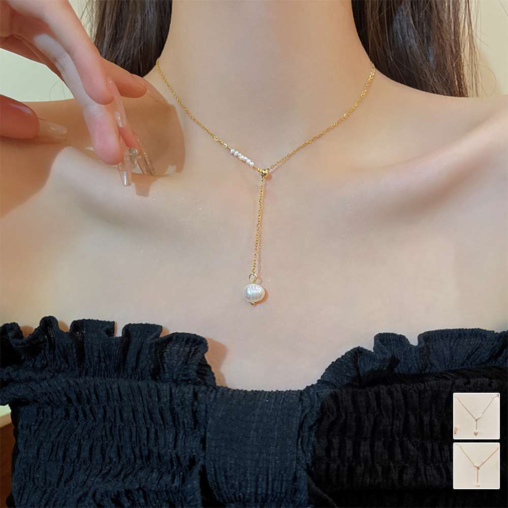 デコルテを上品に引き立ててくれる大人っぽいパールネックレス