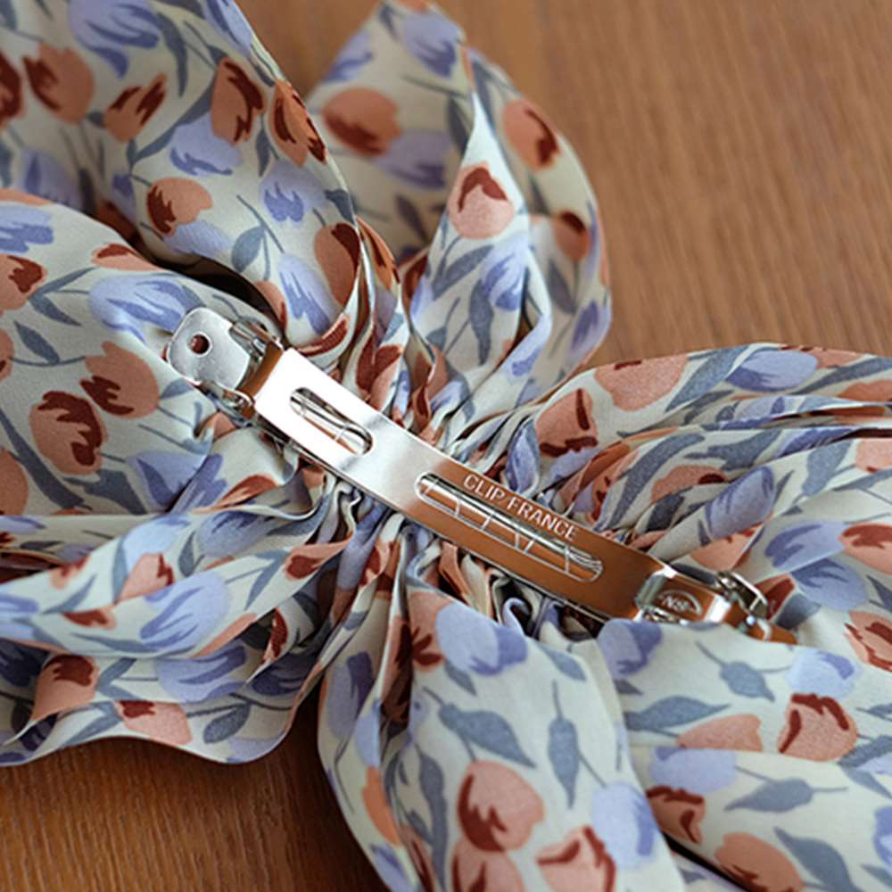 ふんわりとしたシフォン素材のビッグリボン花柄バレッタ