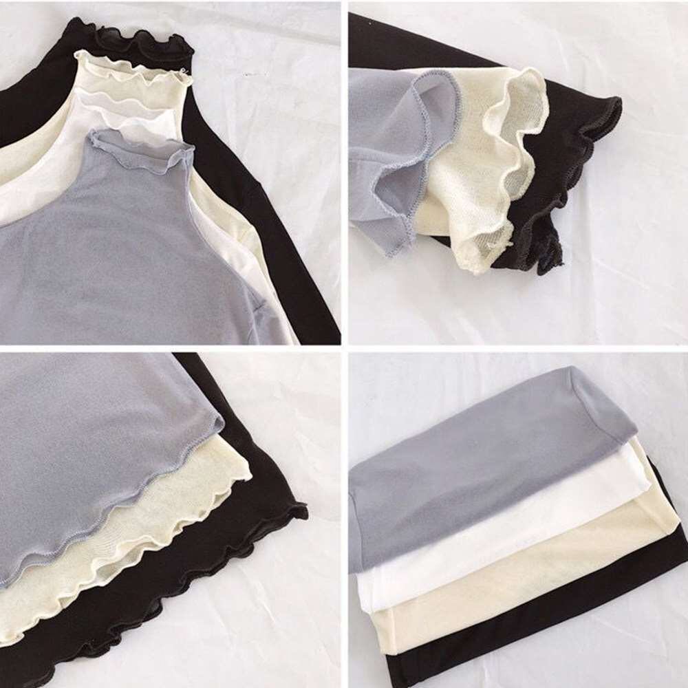 トップス レディース 長袖 シースルー プチハイネック ブラウス