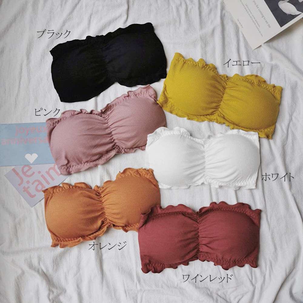 ギャザー チューブトップ ブラ ノンワイヤー オフショルダー ブラトップ カップ付き