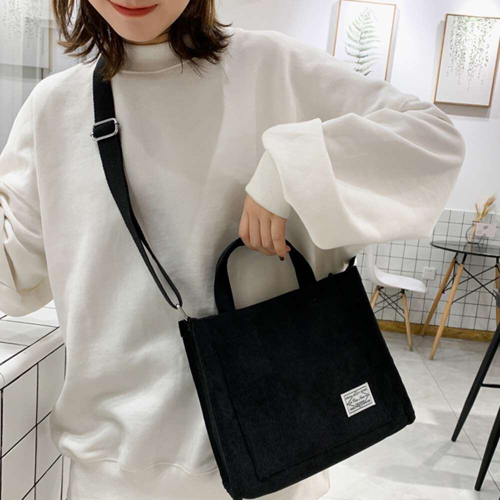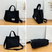 ロゴをフロントポケットにあしらった、カジュアルテイストのコーデュロイミニトートバッグ