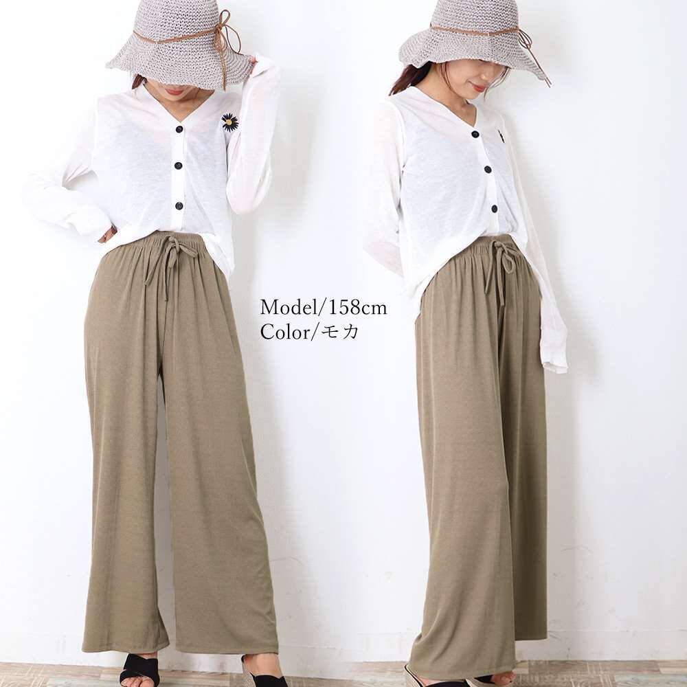 ロング パンツ レディース ワイド ハイウエスト リラックスパンツ