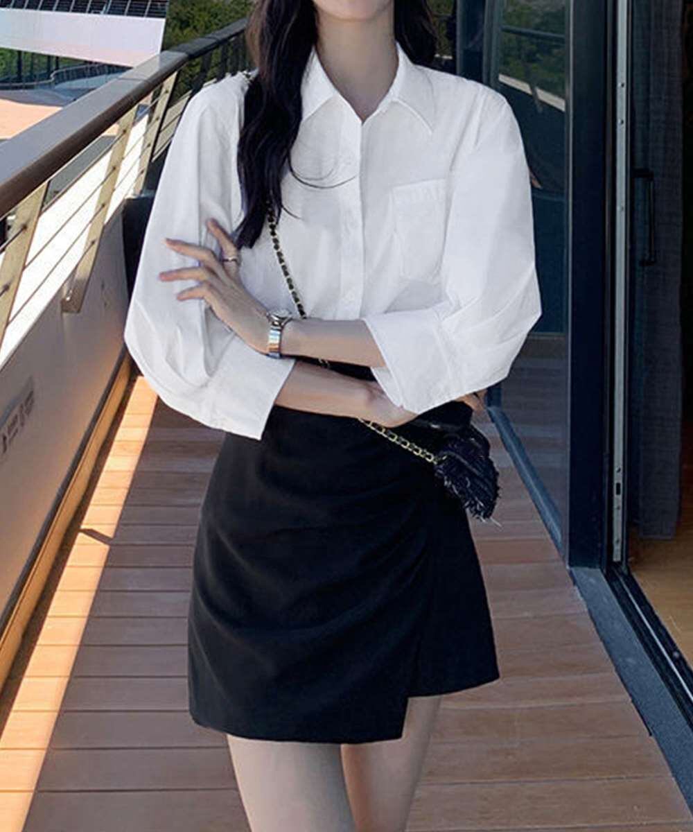 かっちりしすぎない、程よい抜け感が魅力の七分袖シャツ