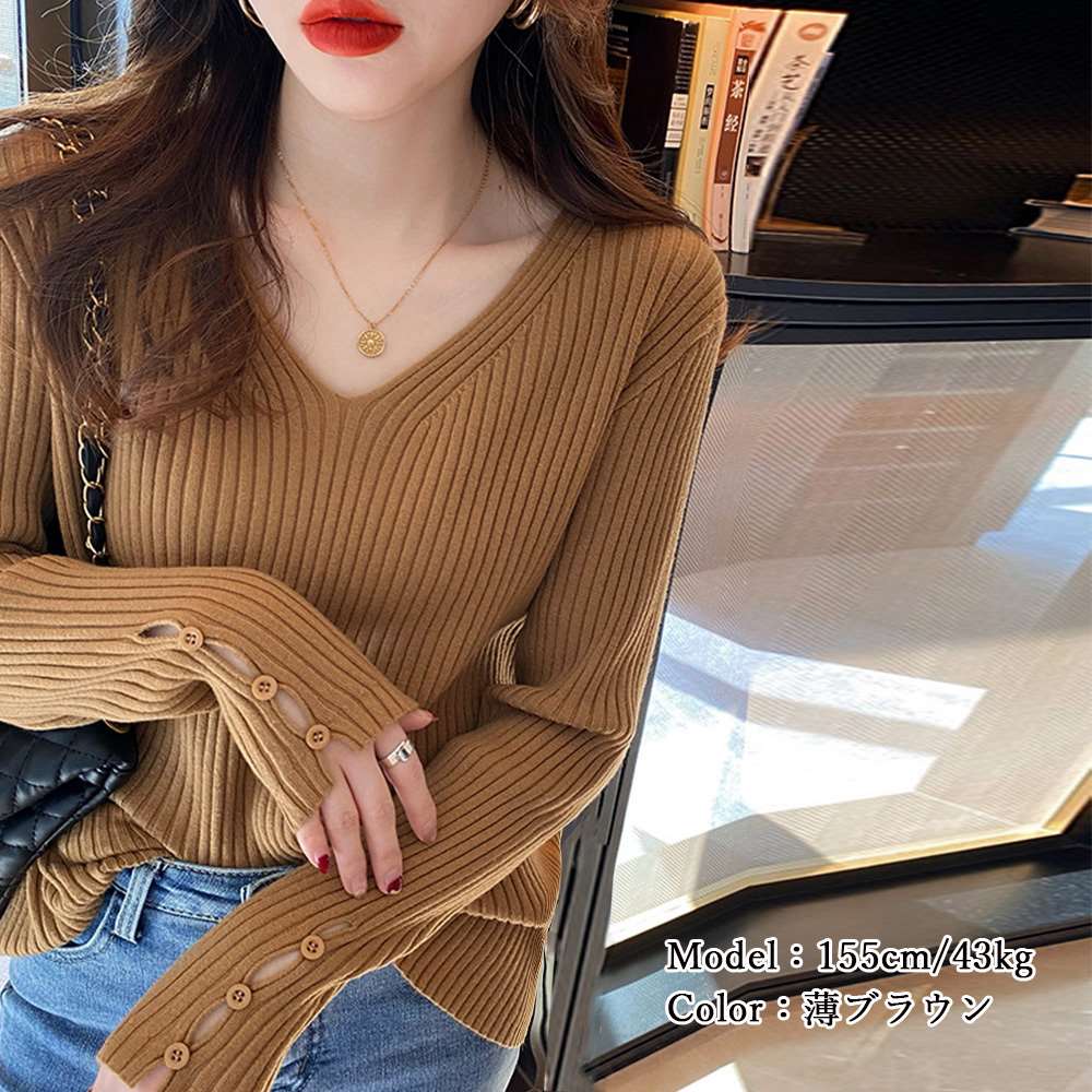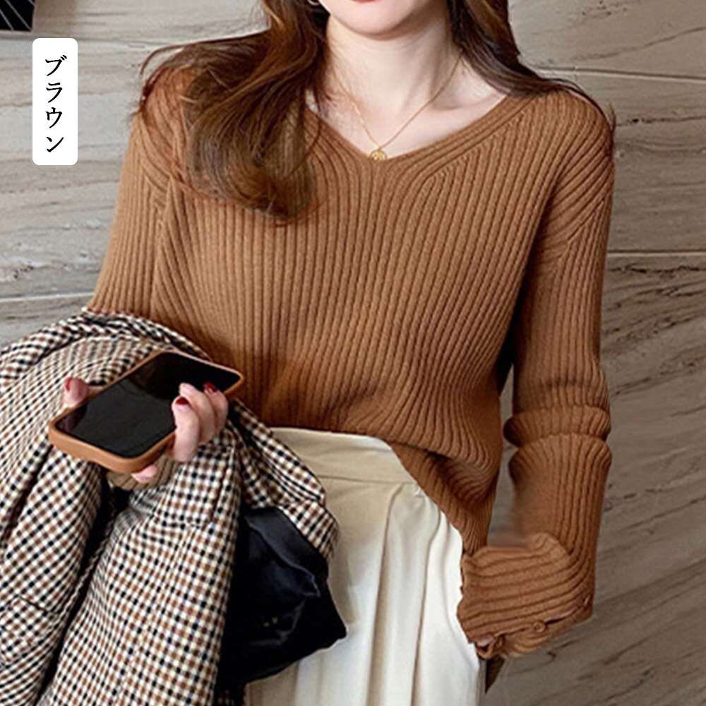 柔らかな肌触りで伸縮性の高いベーシックなVネックリブニットトップス