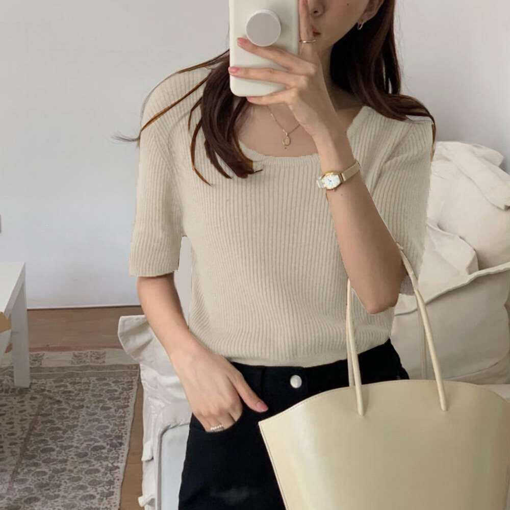 1枚でも重ね着にも着まわし上手な半袖リブニットトップス