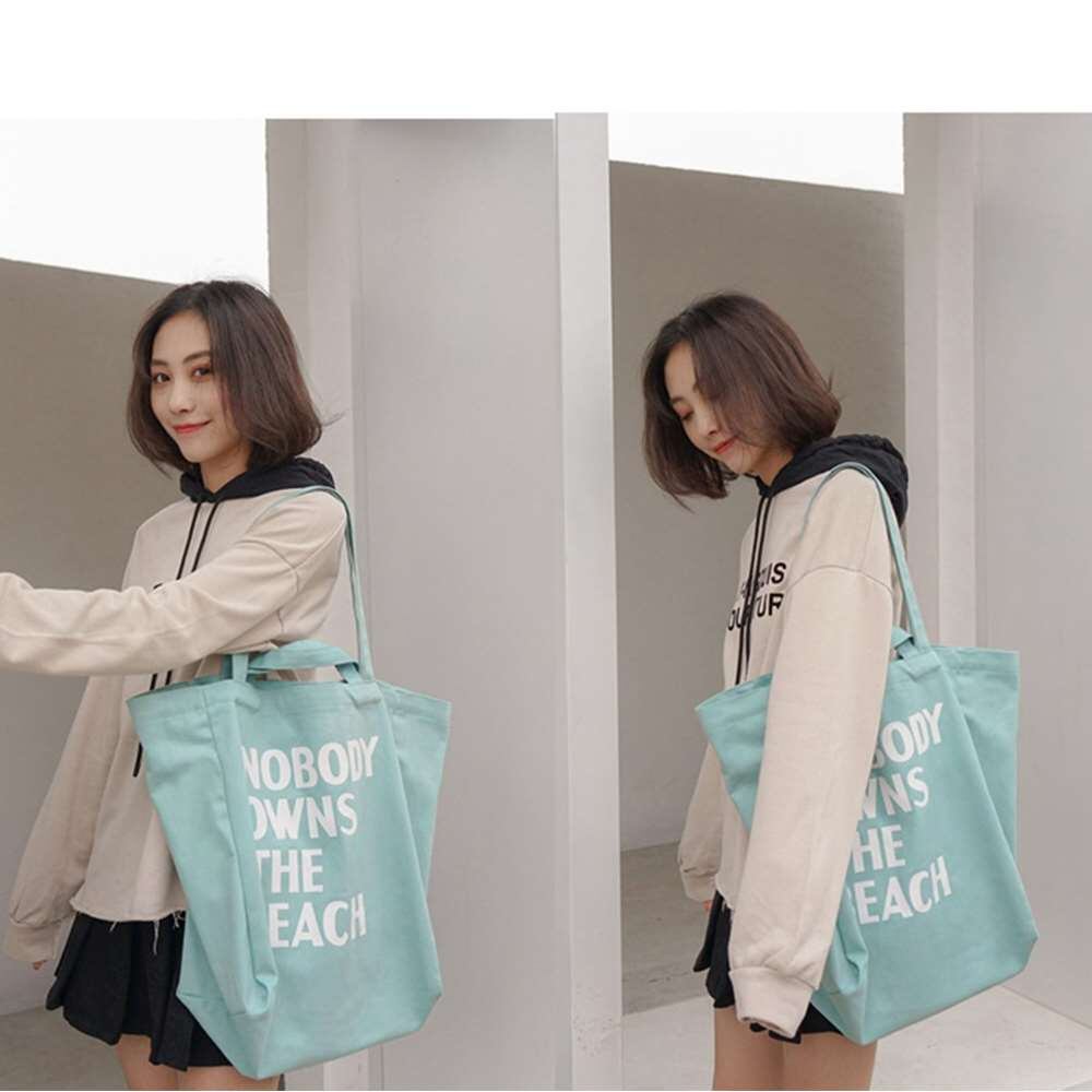 帆布かばん 手提げ エコバッグ 韓国風 プリント鞄 縦型
