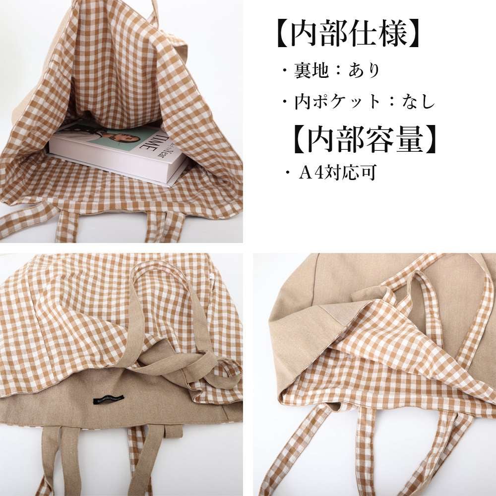 高さ:約33cm 底横幅:約35.5cm マチ:約18.5cm 持ち手:短め約35cm/長め約64cm(調節不可、取り外し不可)