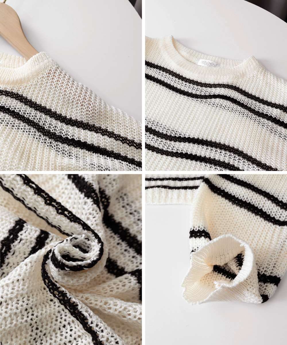 薄手の軽い生地なので、重ね着も日焼け防止対策としても使えるニットトップス
