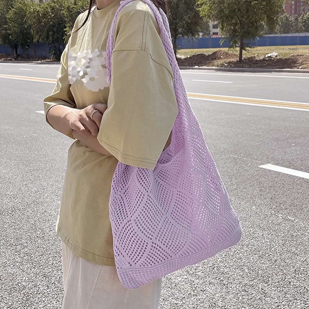 A4サイズも収納可能な大容量タイプ、普段使いでも差し色アイテムとしても大活躍の透かし編みニットバッグ