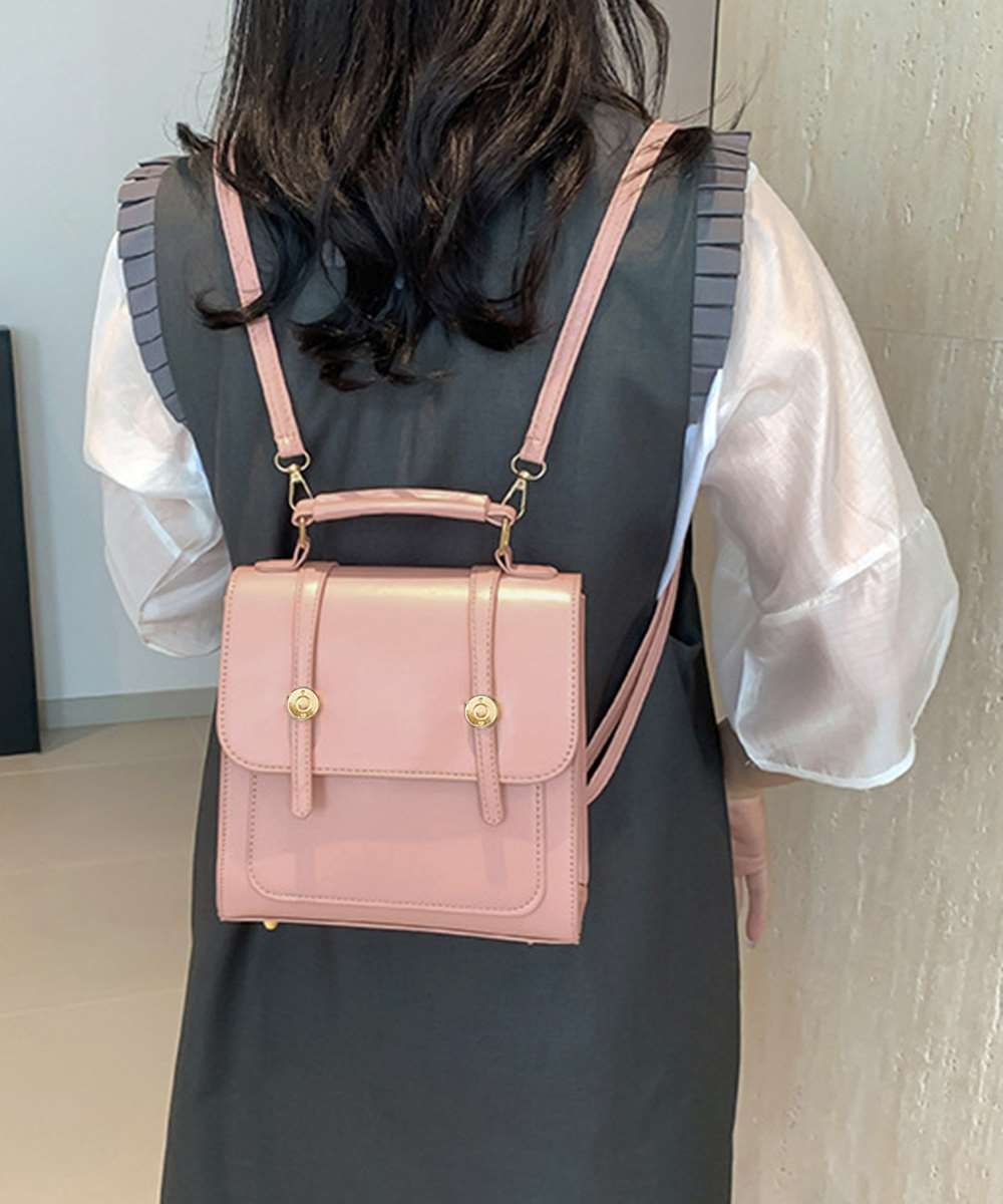 小ぶりなサイズ感で大人の女性らしい上品さを演出するスクエア型リュック
