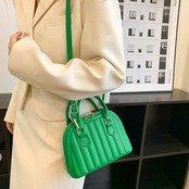 かまぼこ型がレトロな雰囲気をプラスしてくれるPUレザーショルダーバッグです