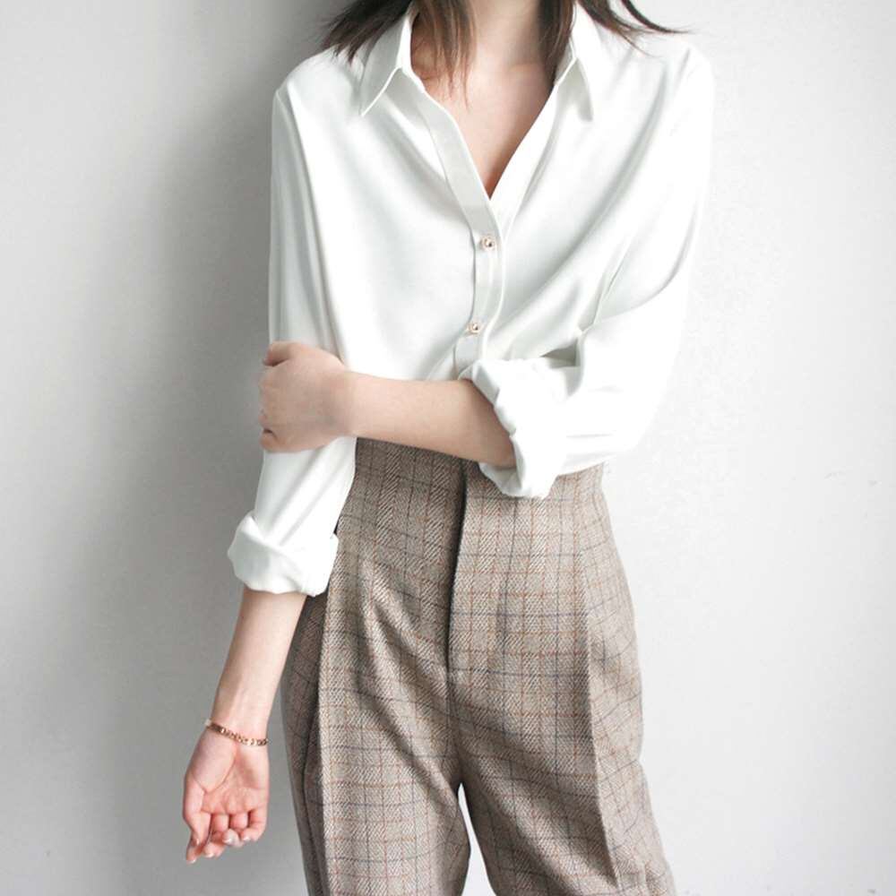 シャツ ブラウス 長袖 レディース Vネック おしゃれ ワイシャツ 無地