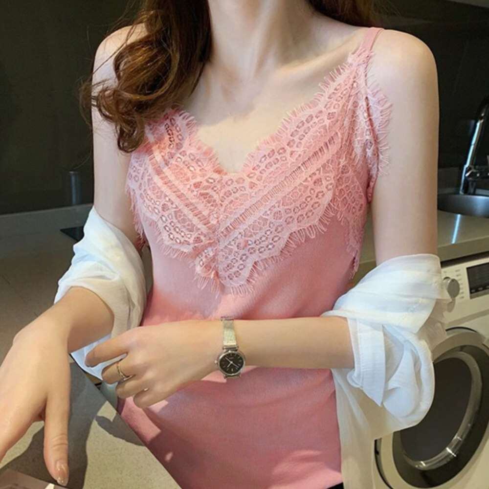 首元や顔周りもすっきりと見せてくれるキレイなVネックキャミソール