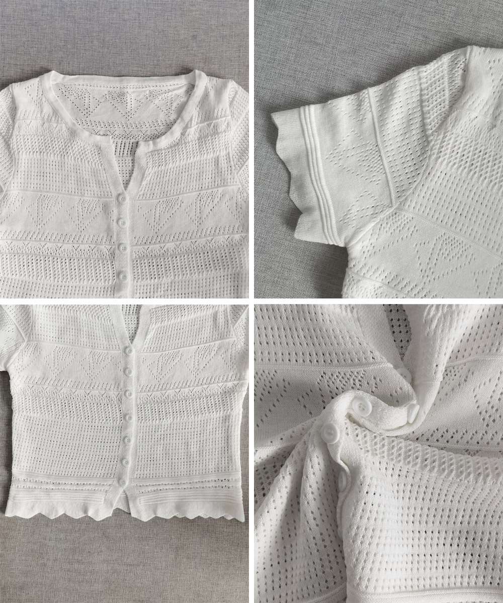 繊細な透かし柄デザイン透かし編みサマーニットカーディガン