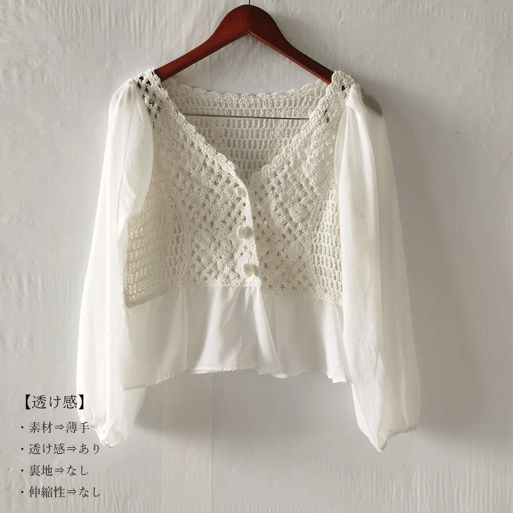 キーワード:シフォン袖 シャツ 透かし ブラウス 薄手 トップス