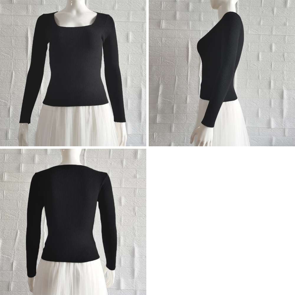 キーワード:シンプル長袖ニット 着やせ リブニット 女性ニットソー無地