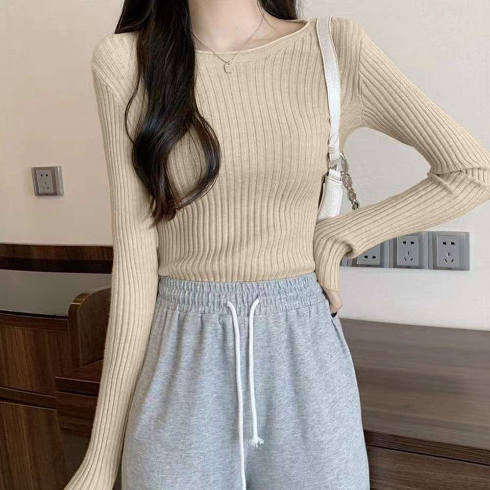 キーワード:タイトトップス 無地ニットインナー ニットソー スリム