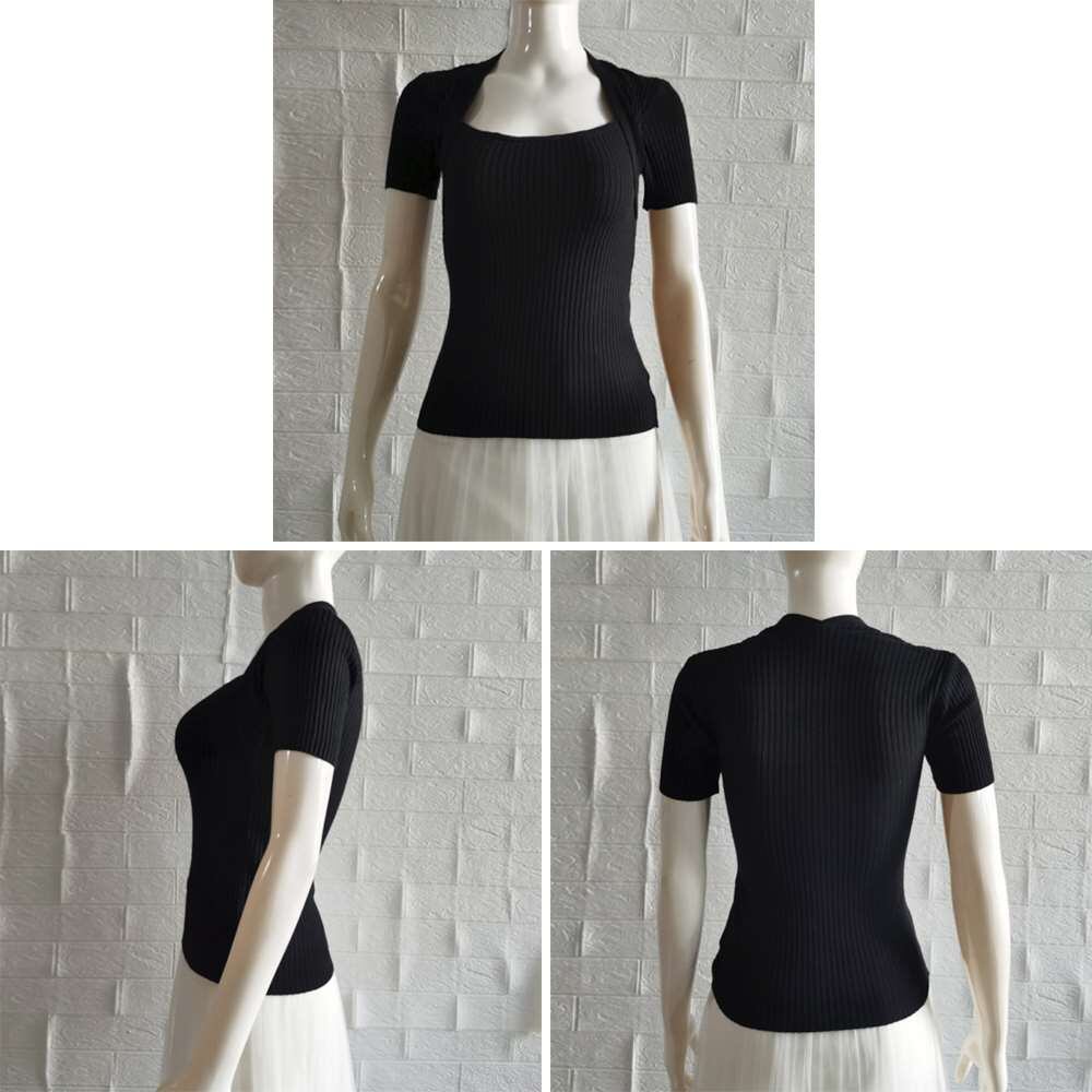 キーワード:タイトニット 無地 きれいめ トップス 着やせサマーニット