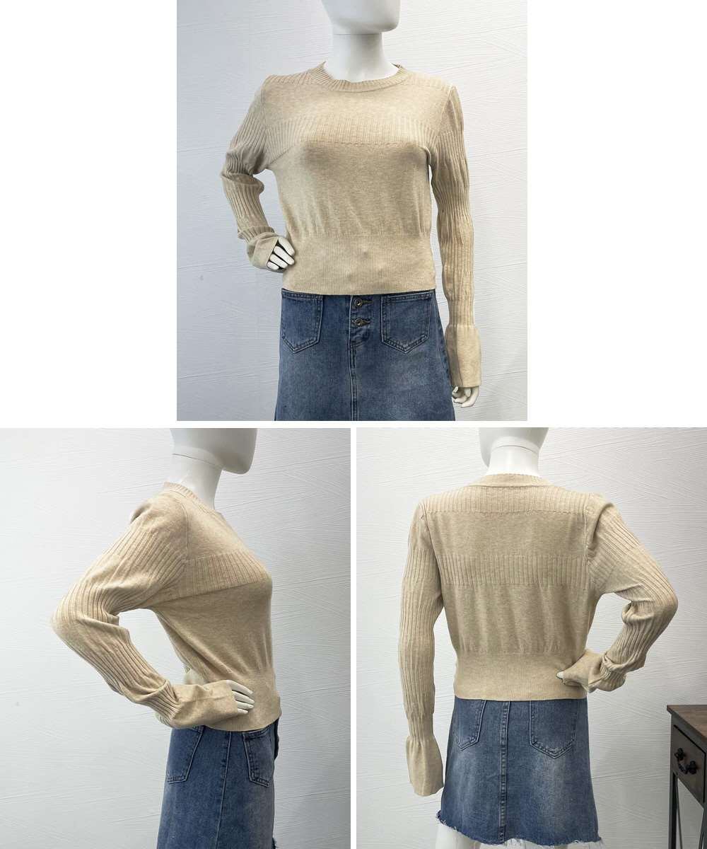 キーワード:カジュアル ニット 長袖 無地トップス 着やせ リブニット