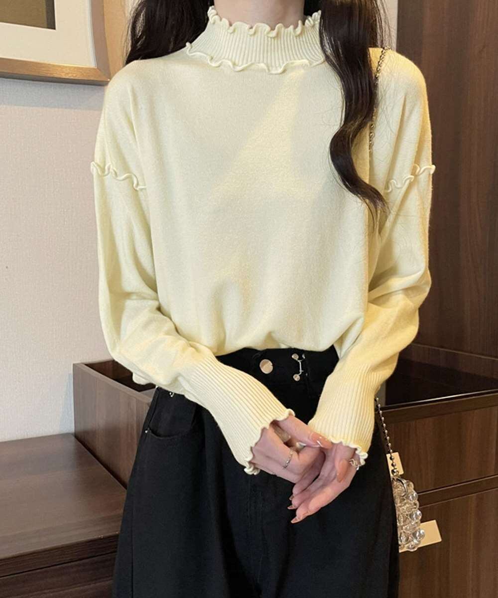 キーワード:長袖ニットトップス 着やせタイトニット 着回しニット韓国風