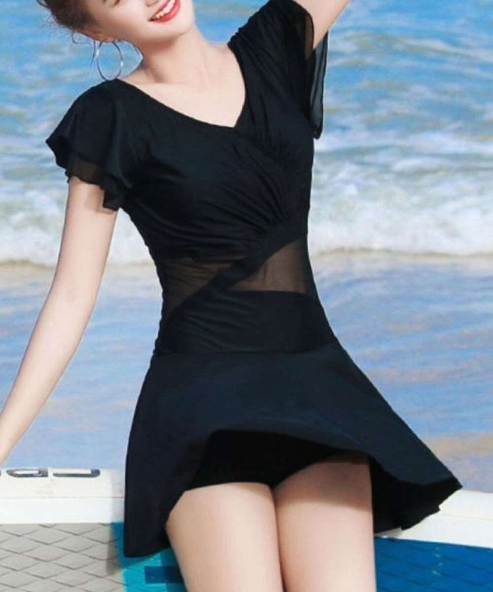 キーワード:みずぎ 黒 海 フェミニンビーチ 背中魅せワンピ水着