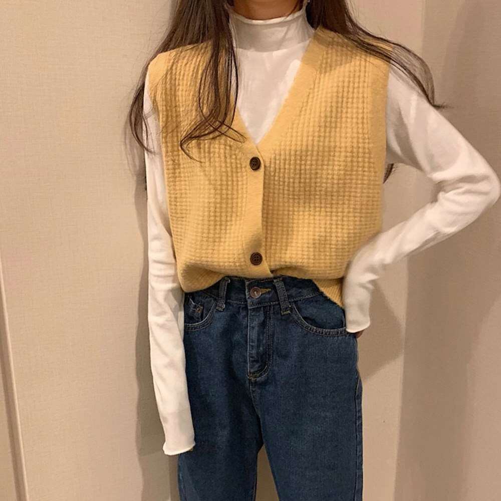 胸元のざっくりとしたデザインでコーデがグッとお洒落になるVネックニットベストです