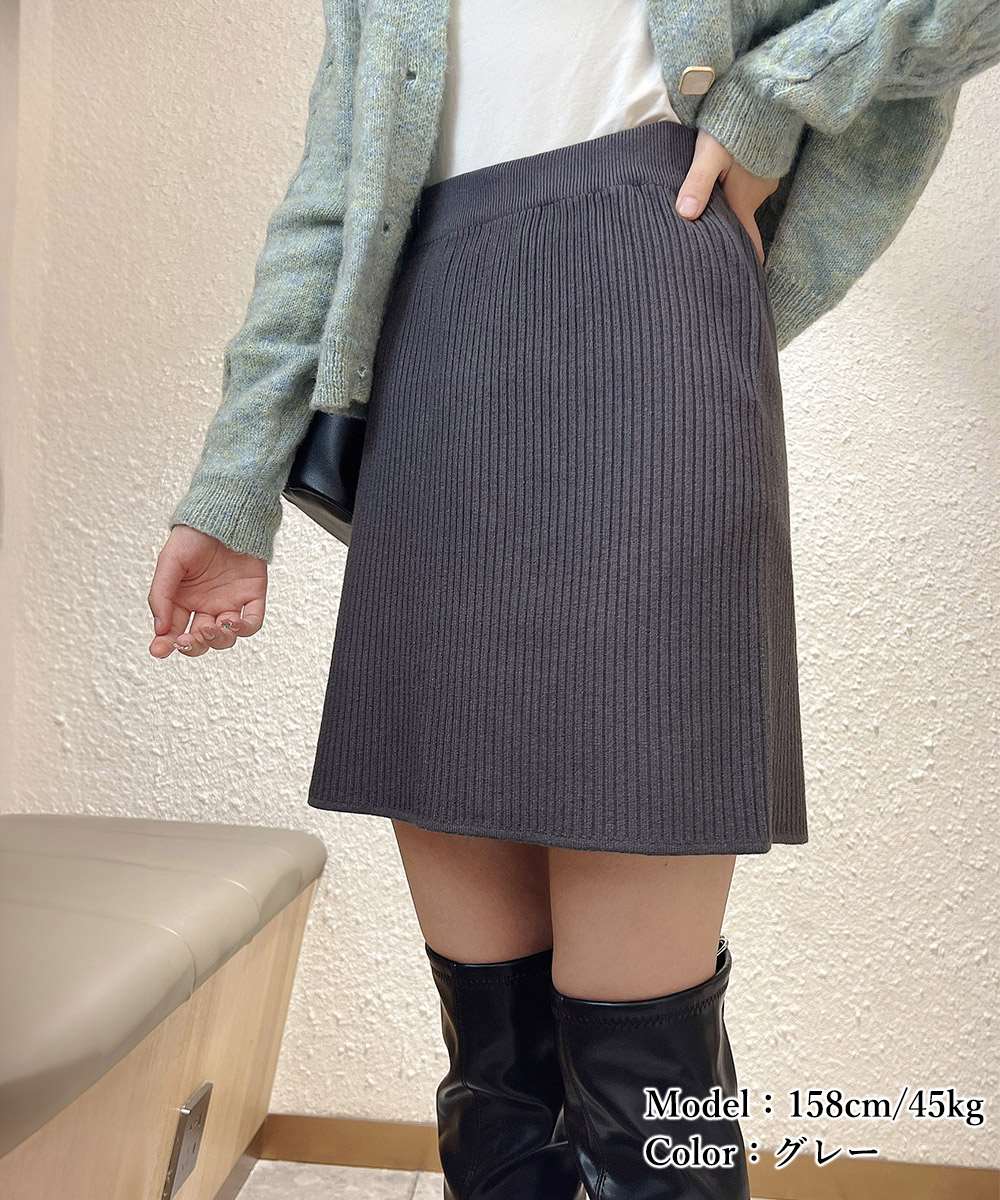 縦ラインを強調するリブ編み&足を長く魅せてくれる膝上丈はスタイルアップを実現