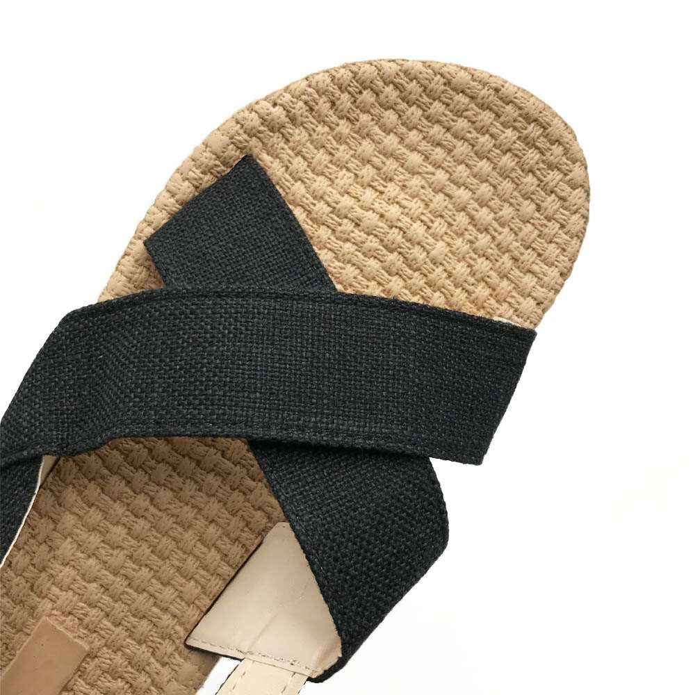 クロスストラップで足首を細く見せてくれる。サッと脱ぎ履きできるのが楽ちん