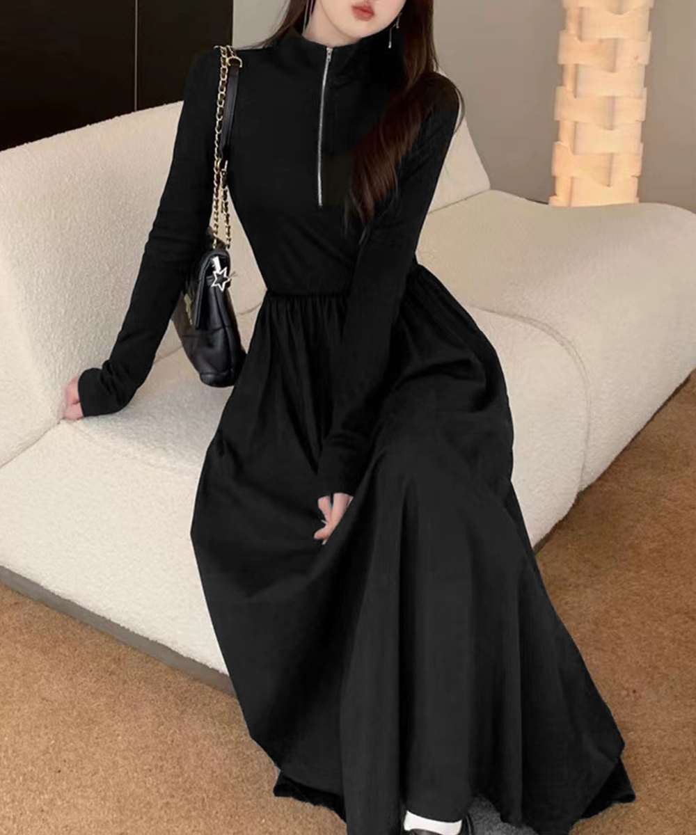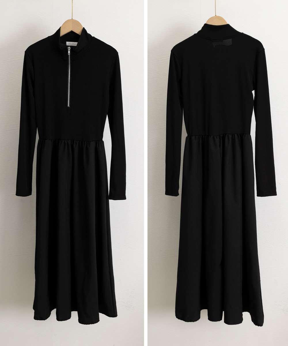 ハーフジップで首元の抜け感を調節できるロングワンピース