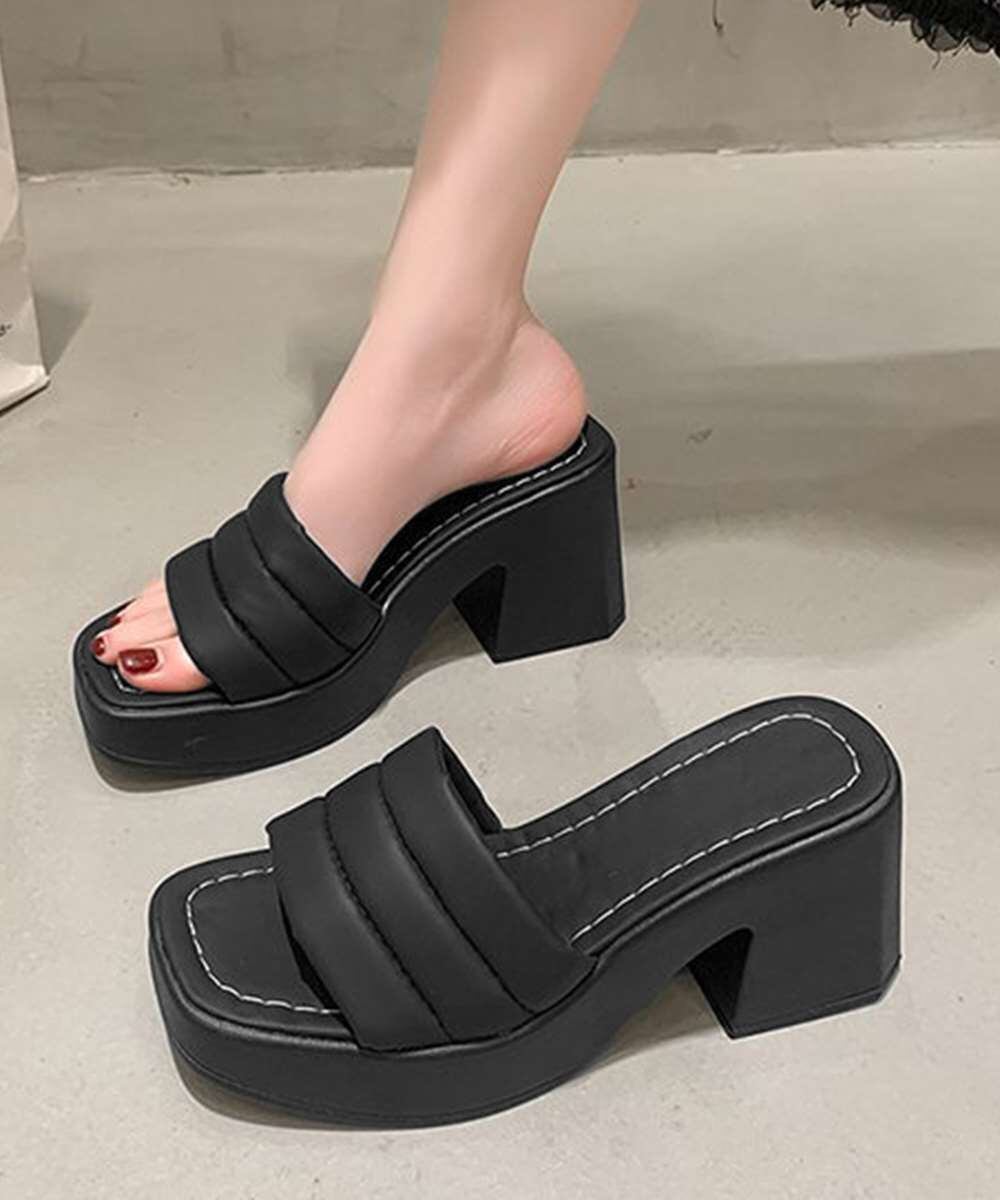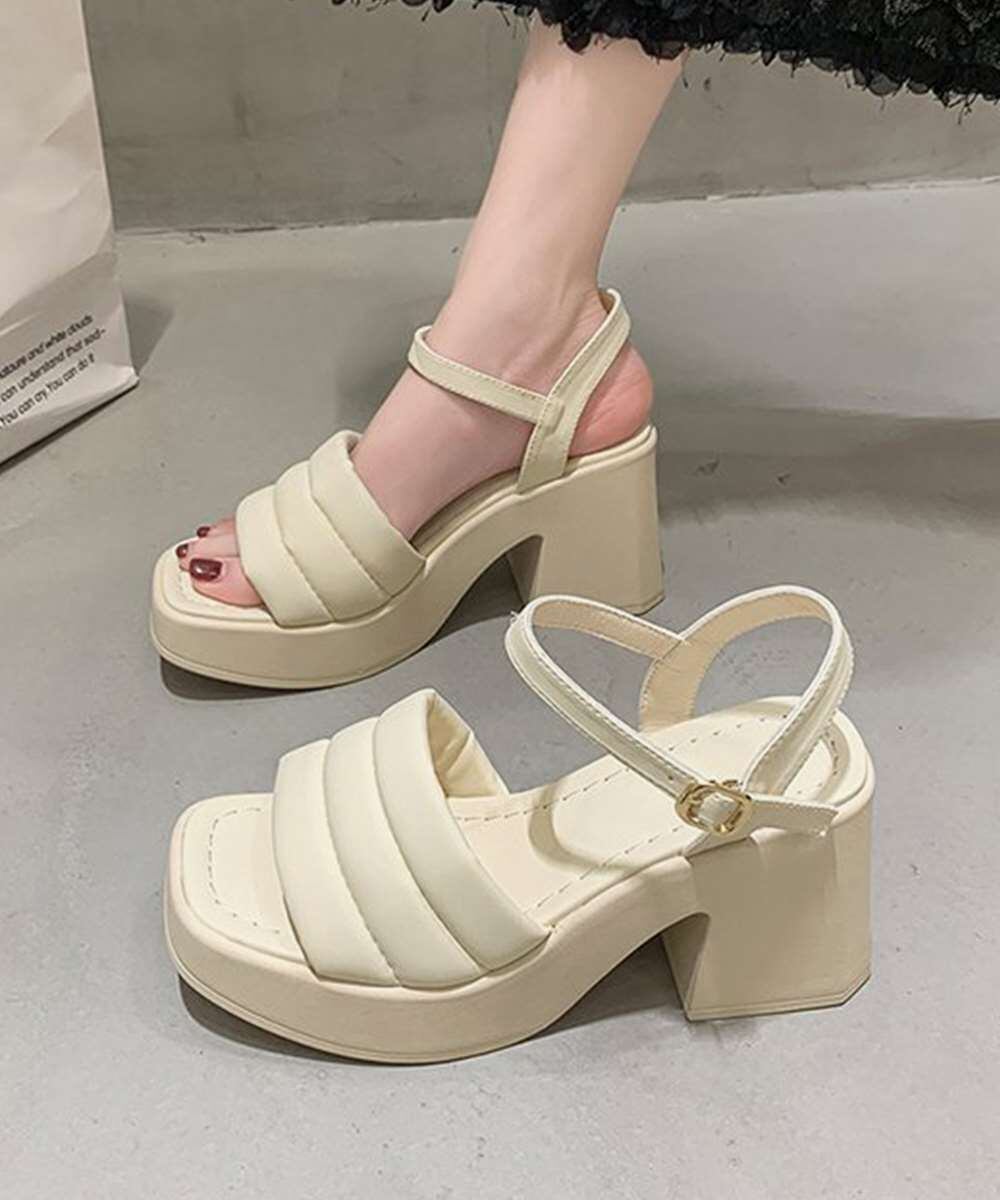カジュアルはもちろん、きれいめなコーディネートにも馴染むシンプルなスクエアトゥハイヒールサンダル